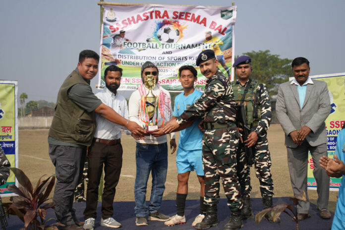 Gossaigaon: Under the Civic Action Programme, the 31st Battalion of the Sashastra Seema Bal (SSB) organised the grand finale of a football tournament match at the central ground in Takampur village on Thursday, intending to promote sports culture in border areas and foster closer ties between security forces and local communities. Held under the guidance of Amit Singh, Commandant, 31st Bn SSB, the event sought to engage youth in positive activities while strengthening coordination and mutual trust with civilians. Dr S K Paul, Senior Scientist, Krishi Vigyan Kendra, attended as the chief guest, while Deepak Narzary, Chairman, TCLCC Kachugaon, was the guest of honour. Several dignitaries, public representatives and members of social organisations were also present.