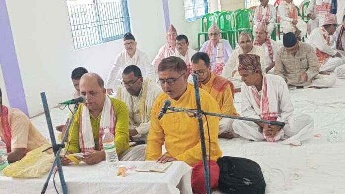 Biswanath Chariali: The Biswanath district committee of Assam Gorkha Sammelan (AGS) organized a one-day Bhagawat oration in memory of the legendary singer Zubeen Garg today at the office of the Biswanath district committee AGS located at Golia today, informed a press release. Earlier to this floral tribute was paid in front of the portrait of the iconic singer by all. A total of six priests read out the Bhagawat.