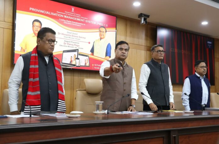 Guwahati: In a major boost to state’s education sector, Chief Minister Dr. Himanta Biswa Sarma ceremonially launched the Provincialization Management System (PMS) portal, a dedicated digital platform that will streamline the provincialization process of venture institutions and their teaching and non-teaching staff at a programme held at Lok Sewa Bhawan here today. It may be noted that the PMS is a centralized digital platform developed to streamline, monitor and process applications for provincialization of venture educational institutions and the services of its teaching and non-teaching staff. The portal has been designed in view of a centralized database of venture educational institutions and services of personnel associated with the venture schools and colleges. The portal can be accessed by visiting https://elementary.assam.gov.in/,https://madhyamik.assam.gov.in/,https://directorateofhighereducation.assam.gov.in/.