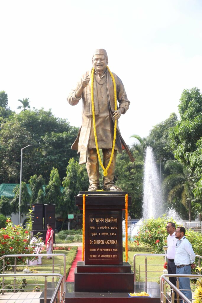 Highlighting the state’s year-long celebration of Dr Bhupen Hazarika’s birth centenary, Dr Sarma recalled that Prime Minister Narendra Modi had graced the inaugural ceremony and that the closing event will be held at Bharat Mandapam in New Delhi. He also announced that the government will construct a monumental statue of Dr Hazarika—over 100 feet tall—at the zero point of the Bhupen Hazarika Setu (Dhola-Sadiya Bridge).