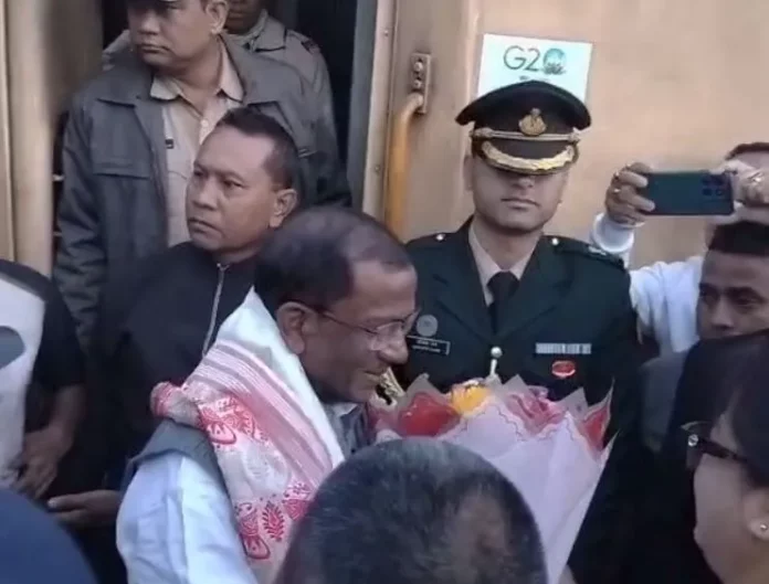 Assam Governor Lakshman Prasad Acharya made an unprecedented visit to Dhemaji district on Thursday, marking the first time a sitting Governor has traveled to the area by train. The Governor boarded the Lachit Express in Guwahati and undertook the nearly four-hour journey to Murkongselek, alighting at Dhemaji Railway Station at 5:45 a.m. Upon his arrival, the Dhemaji district administration was on hand to extend a formal and warm welcome.
