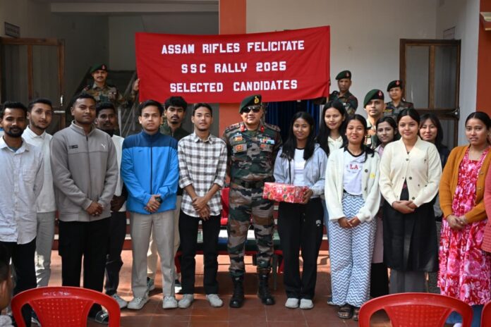 Tezpur: Assam Rifles organised a felicitation ceremony at Lokra, for the candidates who successfully qualified the SSC GD examination. The candidates had been trained by Assam Rifles through comprehensive pre-recruitment modules encompassing written examination coaching, physical training and pre-medical preparation, which played a pivotal role in their success.