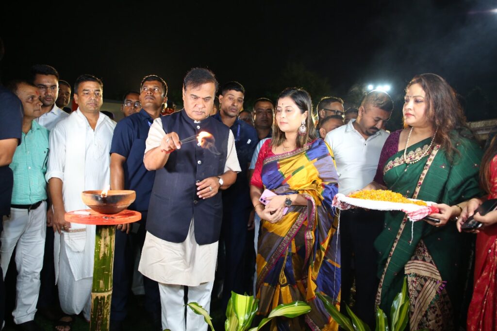 Guwahati: On the occasion of Sharadiya Durgotsav, Assam Chief Minister Dr. Himanta Biswa Sarma took part in the annual Bharat Mata Pujan at the Assam Engineering Institute ground, Chandmari, offering his respects to Bharat Mata and paying heartfelt tribute to Bharat Ratna Dr. Bhupen Hazarika and musical legend Zubeen Garg.