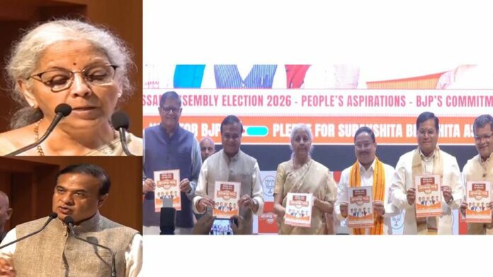 The manifesto was released in the presence of Chief Minister Himanta Biswa Sarma, Union Ministers Nirmala Sitharaman and Sarbananda Sonowal, along with state BJP president Dilip Saikia. Party leaders said the document was shaped by over 2.45 lakh public suggestions collected through extensive outreach across Assam, positioning it as a people-driven agenda.
