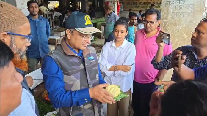 Nagaon: In a surprise move, Nagaon District Commissioner, Debashish Sarma, along with the Food Safety Officer, Fisheries Officer, and a mobile laboratory team, inspected the fish market at Morikolong and vegetable market at Barbazar in Nagaon town today.