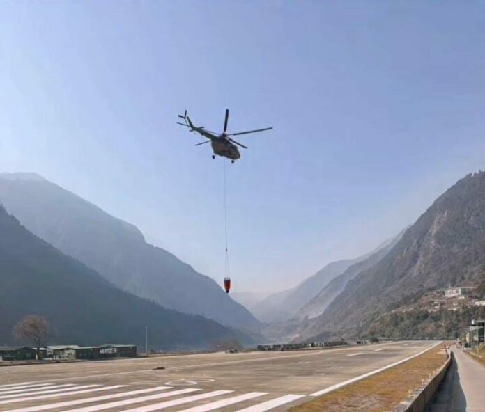 At Walong in Anjaw district, helicopters dropped a total of 139,800 litres of water to contain a major blaze that broke out on the night of February 13. The fire had engulfed parts of the town, triggering panic among residents and prompting emergency measures.