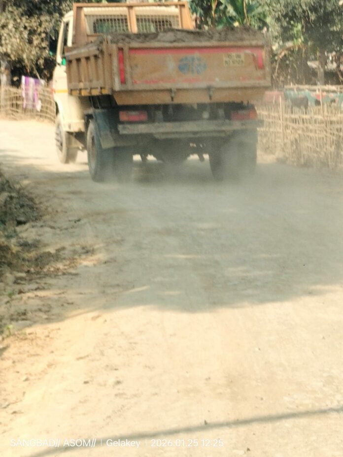 The dumpers, reportedly transporting sand illegally extracted from the Disang river, have become a daily sight, particularly in the Hatipati and Kolgaon areas. Residents allege that the movement of these vehicles has led to severe dust pollution, reduced visibility on roads, and an increase in accidents. Pedestrians and school-going children are among the worst affected, with many complaining of breathing difficulties and constant discomfort.