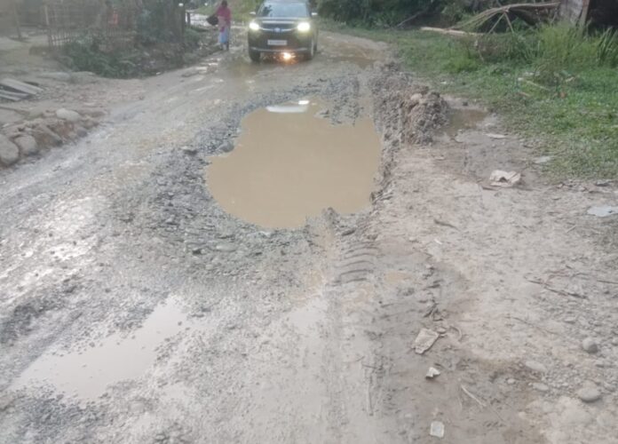 Sivasagar: Residents of the Charaipung area in Assam’s Charaideo district are enduring severe hardship as the Lahdoigarh–Rangluwa road, a key route connecting Assam with Arunachal Pradesh, continues to deteriorate without repair.