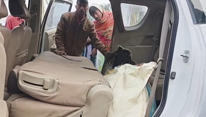 Bilasipara: A major cattle smuggling racket was busted in Bilasipara after police intercepted a luxury car being used to illegally transport cattle in a highly unusual and shocking manner. The smugglers had hidden the cattle inside sacks and attempted to move them secretly through the area. Acting on a specific tip-off, Bilasipara Police launched a swift operation and chased a Maruti Suzuki vehicle. The police finally intercepted the car at Kathaldi Second Part village and recovered four smuggled cattle from inside the vehicle.