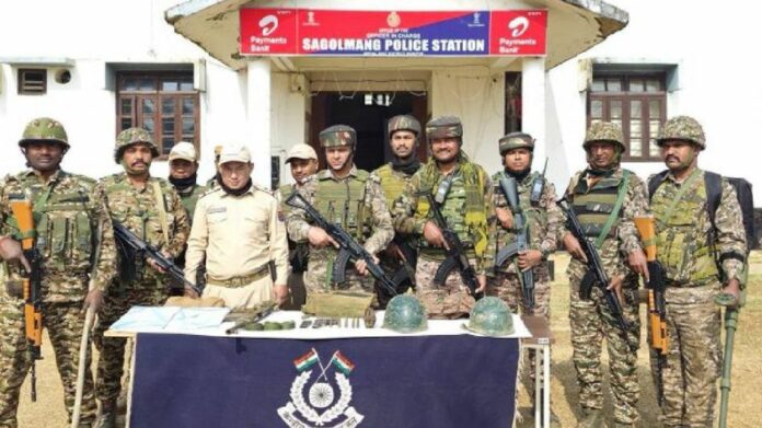The coordinated operation was centered in the Nungai Hill Range, an area falling under the jurisdiction of the Sagolmang Police Station. Acting on precise intelligence, personnel scoured the rugged terrain to locate the concealed items. The seizure included a country-made rifle, a 9 mm country-made pistol with a matching magazine, and a high-explosive HE-36 hand grenade. Alongside these weapons, five rounds of .303 ammunition were also retrieved from the site.