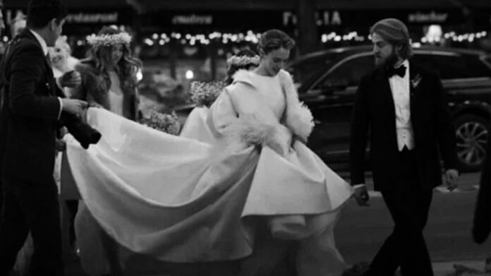 Hawke wore a white gown paired with an oversized feathered winter coat, while Hutson chose a traditional black tuxedo. Ethan Hawke was seen walking beside his daughter carrying a bouquet of white flowers, and Thurman opted for a light blue floral outfit for the ceremony.