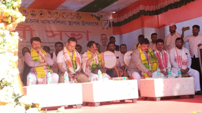 Dhubri: The foundation stone and central pillar of the new Rajiv Bhavan building in Dhubri were laid today in a ceremonial event attended by Assam Pradesh Congress Committee (APCC) president Gaurav Gogoi and AICC secretary and APCC in-charge Jitendra Singh.