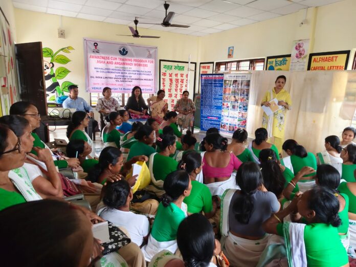 Duliajan: Mrinaljyoti Rehabilitation Centre (MRC), an organisation, working for the empowerment of persons with disabilities for over two and a half decades, successfully organized an Awareness-cum-Training Program under Project “OIL SAKSHYAM” for Anganwadi workers of the JOYPUR ICDS Project at the Lengerijan Tea Estate Model Anganwadi Centre, Naharkatia on October 31.
