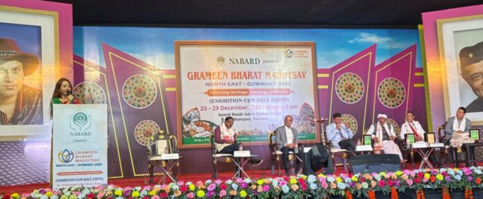 Guwahati: The National Bank for Agriculture and Rural Development (NABARD) today inaugurated Grameen Bharat Mahotsav: North-East 2025 – Fostering Heritage, Creating Livelihood at the Ganesh Mandir Indoor Stadium Ground, Khanapara. Organised by NABARD Assam Regional Office, the ten-day exhibition-cum-sale will continue till December 29, aiming to strengthen market access and sustainable livelihoods for rural artisans, weavers, and micro-entrepreneurs across the North Eastern Region.