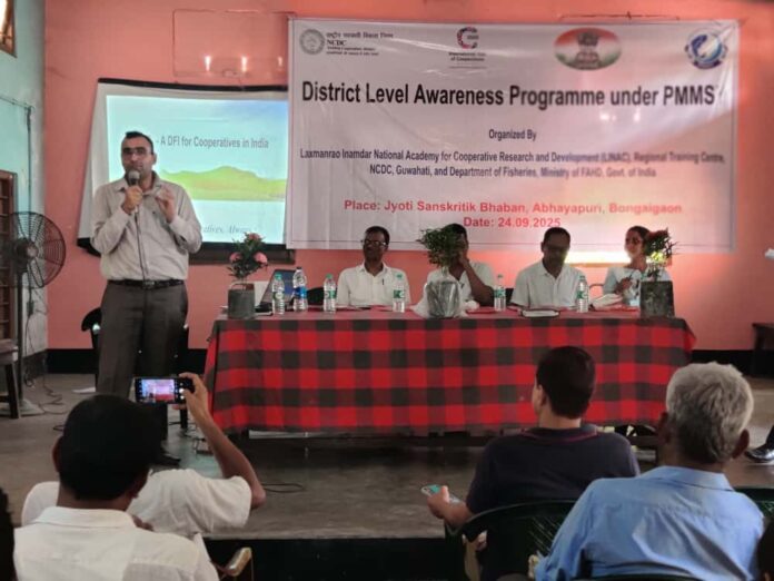 Guwahati: The National Cooperative Development Corporation (NCDC) Regional Office, Guwahati, in collaboration with the Department of Fisheries, Government of India, organized a district-level awareness programme on Pradhan Mantri Matsya Sampada Yojana (PMMSY), Fisheries & Aquaculture Infrastructure Development Fund (FIDF) and LINAC-NCDC Fisheries Business Incubation Center (LIFIC) at Jyoti Sanskritik Bhaban, Abhayapuri, Bongaigaon, on Wednesday.