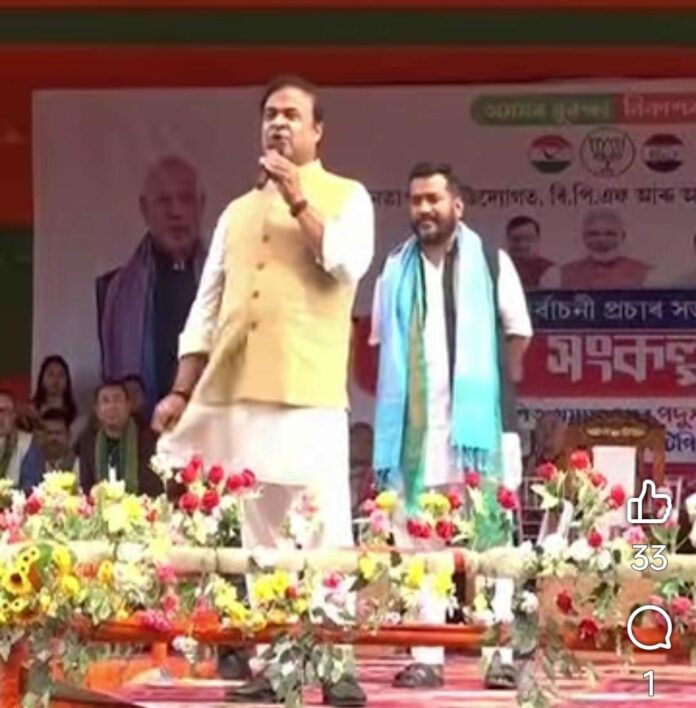 Tamulpur: A massive election rally under the NDA’s Vijay Sankalp Yatra was held at Shuklai Serfang playground in the 44-Goreswar Assembly constituency, with top leaders expressing confidence in a sweeping victory for the alliance in the Bodoland Territorial Council (BTC) region. Addressing the gathering, Assam Chief Minister Himanta Biswa Sarma asserted that NDA candidates would win all 15 BTC seats. Campaigning in support of BJP-nominated candidate Victor Kumar Das, he urged voters to back the lotus symbol, highlighting that the BJP is in power both at the Centre and in the state.