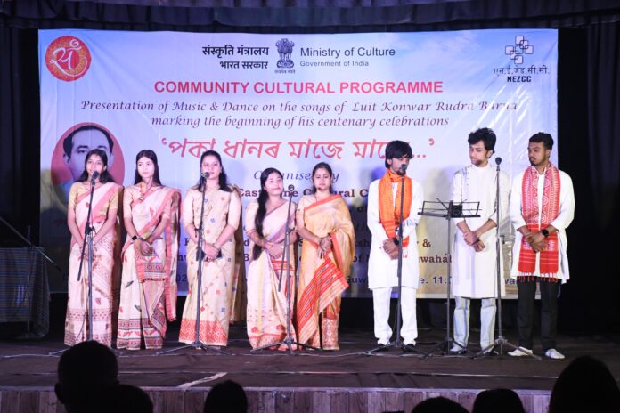 Guwahati: The North East Zone Cultural Centre (NEZCC) organised an enthralling Music and Dance Presentation titled “Poka Dhanor Maje Maje” at the NEZCC Shilpgram Complex, Guwahati, on November 24 marking the commencement of the Centenary Celebrations of legendary Assamese musician, artiste, and cultural ambassador Luit Konwar Rudra Barua. The programme began at 11:00 AM under NEZCC’s Community Cultural Programme initiative.