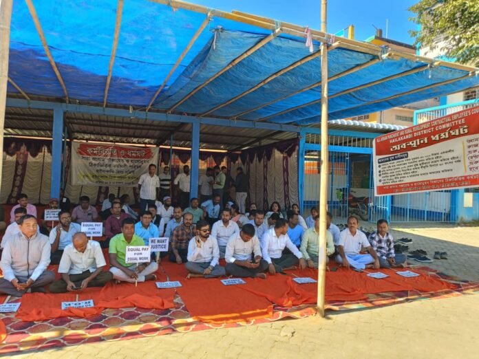 Contractual employees of the Panchayat and Rural Development (P&RD) Department staged a sit-in protest at the Bajali District Council office on Wednesday, 19 November, stepping up their statewide agitation against what they described as years of neglect of their service conditions.