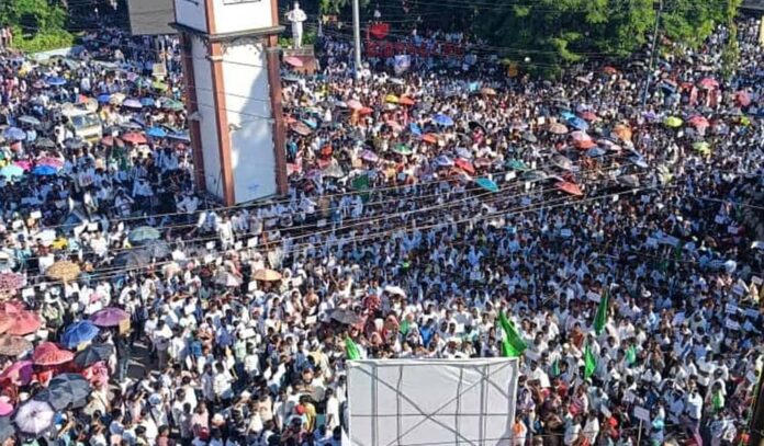 Community leaders addressing the crowd accused the government of repeatedly neglecting their legitimate demands, warning that such disregard could have political consequences in the 2026 Assembly elections. They noted that successive governments had promised reforms before elections but failed to implement them.