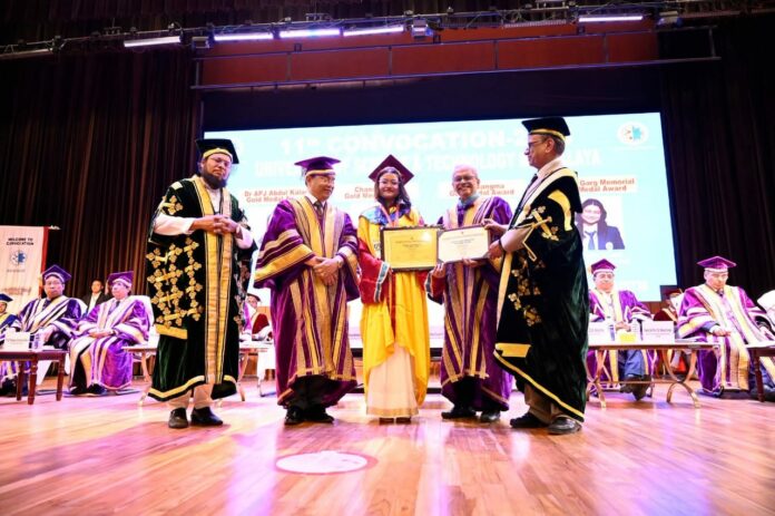 The convocation ceremony, held at the USTM Auditorium, was attended by Meghalaya Deputy Chief Minister Sniawbhalang Dhar as the Chief Guest. The event also featured Padma Bhushan Dr. Senapathy “Kris” Gopalakrishnan, Chairman of the Council, IISc Bangalore, and Co-founder of Infosys, along with several eminent academicians and dignitaries.