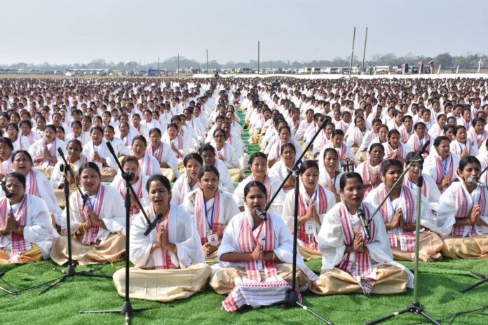 Sivasagar, Feb 3: Sivasagar etched its name in cultural history on February 3 as 15,555 women came together at the historic Jerenga Pathar to create a world record by performing Assamese Dihanam continuously for 45 minutes. Officials said the unprecedented performance has been officially recognised and recorded by the World-Wide Book of Records, marking a landmark moment for Assam’s spiritual and cultural heritage.