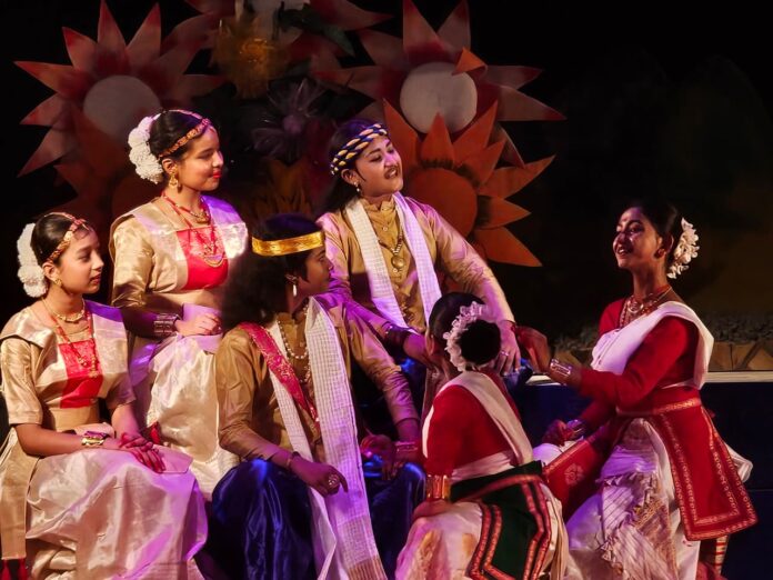 Nagaon: The Sattradhar, a local theatre group, staged the play ‘Son pakhili’ written by noted playwright Jyotiprasad Agarwala, at their permanent venue in Nagaon’s Kalongpar area last night. The play, which was left incomplete by Agarwala, was completed by eminent Assamese litterateur Atul Chandra Hazarika. The production was a resounding success, with the young actors captivating the audience with their impressive performances.