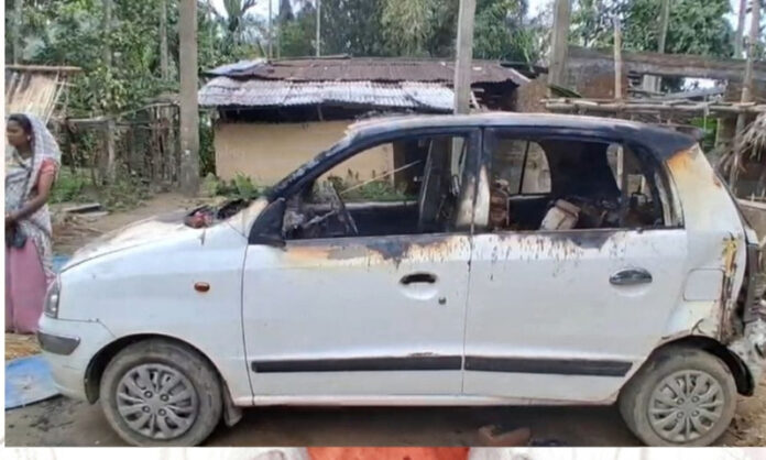 Digboi: Tension gripped the 81 Sadiya Assembly constituency following an alleged arson incident in Kakopathar during the pre-poll silence period early Wednesday. According to reports, unidentified miscreants set fire to a four-wheeler and a granary belonging to local resident Sanjay Gowala. The incident occurred in the early hours, destroying both the vehicle and stored grain. Gowala stated that his family has no known enmity with anyone and expressed suspicion over the motive behind the attack. Family members alleged a possible political angle, claiming they are supporters of the Bharatiya Janata Party (BJP) and had recently hosted a meeting at their residence on April 7 in support of party candidate Bolin Chetia.