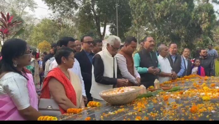 Tezpur: Tezpur’s Kalaguru Samadhi Samanway Kshetra came alive with music, dance and poetry on Friday as the 118th birth anniversary of Kalaguru Bishnu Prasad Rabha was observed with deep reverence and cultural fervour. Organised by the Samadhi Samanway Kshetra Management Committee, the day-long programme began with the lighting of ceremonial lamps at the mausoleum. The event was inaugurated by Prithiraj Rabha, senior artist, son of the Kalaguru and MLA from Tezpur, along with Sonitpur Additional District Commissioner Kamal Barua and noted educationist Mahendra Nath Keot.