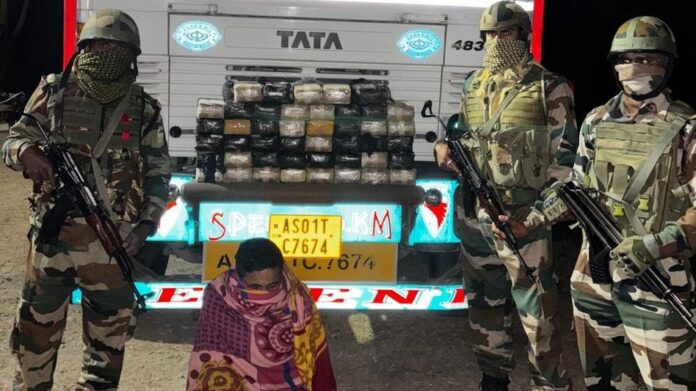 The operation was conducted by the Assam Rifles in coordination with the Directorate of Revenue Intelligence. Acting on actionable information, the joint team stopped a TATA truck bearing registration number AS-01T-C7674 during the operation.