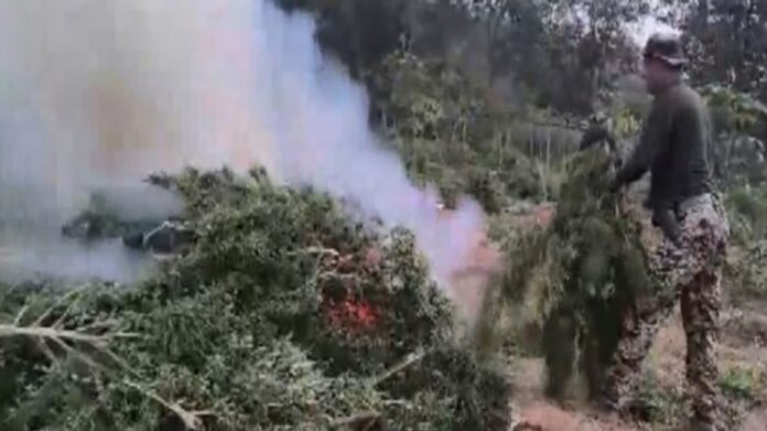 Agartala, Feb 2: Security forces in Tripura have dealt a major blow to illegal drug cultivation by destroying more than five lakh cannabis plants in a massive operation in Sepahijala district, officials said. The destroyed crop is estimated to be worth around Rs 75 crore, making it one of the largest crackdowns on illicit ganja cultivation in the state in recent times.