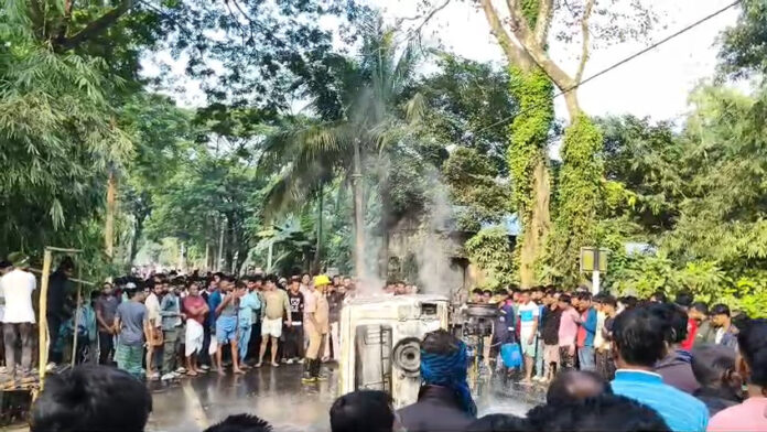 Police from Hajo and fire service personnel rushed to the location to bring the situation under control.