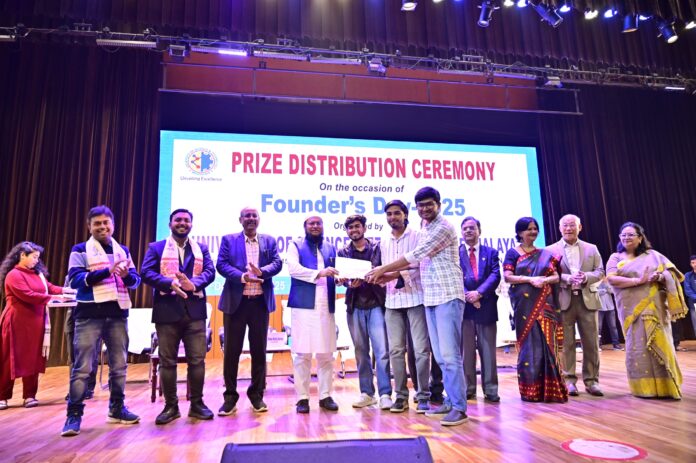 The day also featured a Founder’s Day Pitch Competition organised by the Centre for Innovation, Incubation & Entrepreneurship (CIIE), where young innovators showcased their ideas. Team “Neuroflex” won the First Prize of ₹20,000, followed by “F&V Agro Tech” (₹15,000) and “Nanoheal Innovators” (₹10,000). Two consolation prizes of ₹2,500 each were presented.